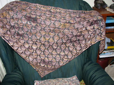 The shawl came out so pretty. I don't even remember which yarn I sent you. Tee hee.